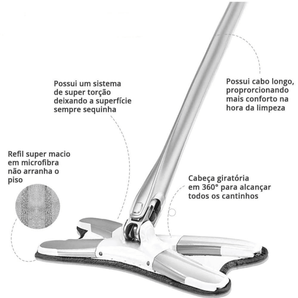 ✅ Ideal para qualquer tipo de piso: Perfeito para pisos vinílicos, laminados, porcelanatos e muito mais. Seu pano de microfibra macio evita arranhões e garante uma limpeza eficiente.