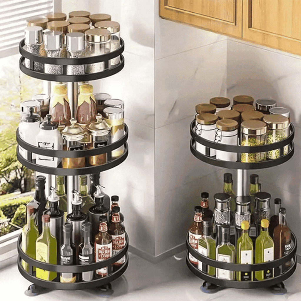 Transforme sua Organização com Estilo e Praticidade! Diga adeus à desordem com o Organizador De Condimentos e Porta Temperos Rotativo