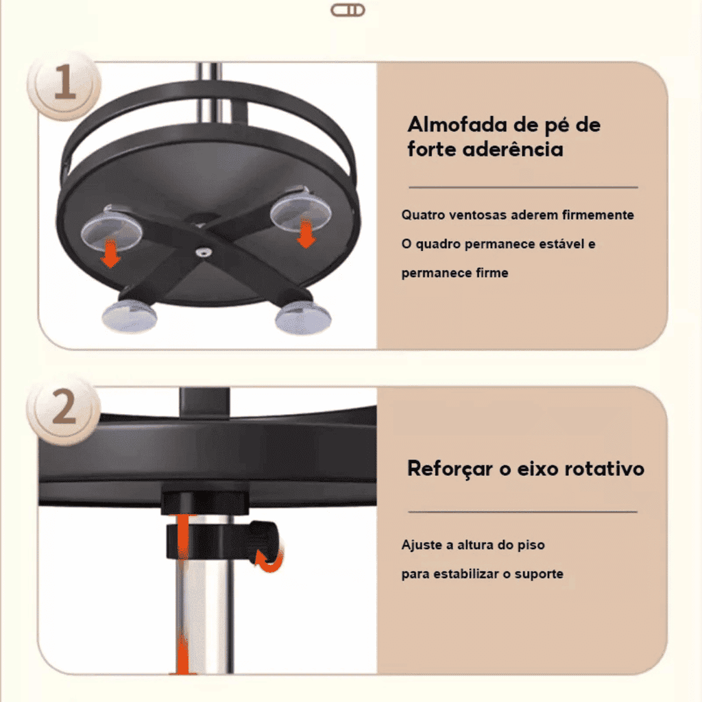 5. Base Antiderrapante: Almofadas com ventosa que oferecem firmeza e distribuição uniforme do peso.